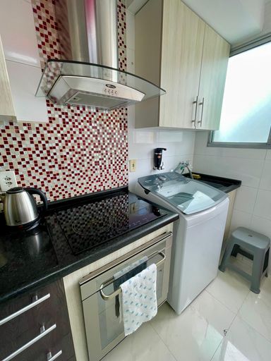 • Cozinha americana com piso em porcelanato