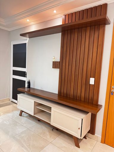 Sala com rack e painel de TV