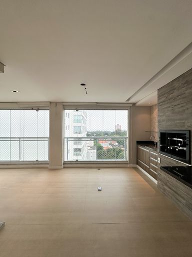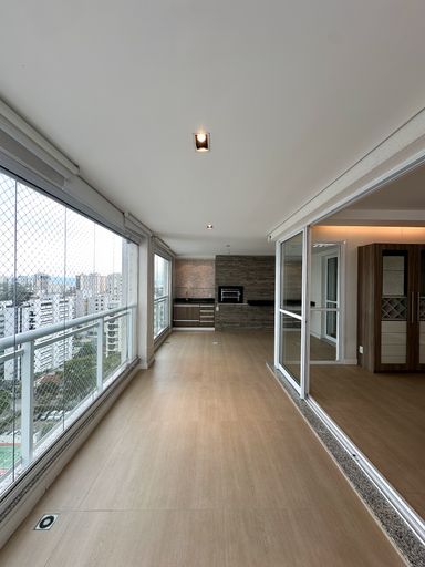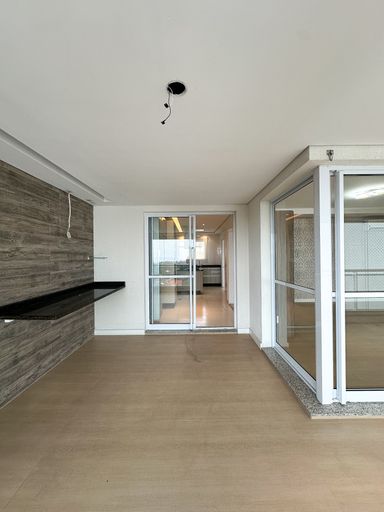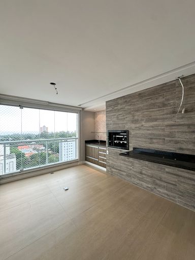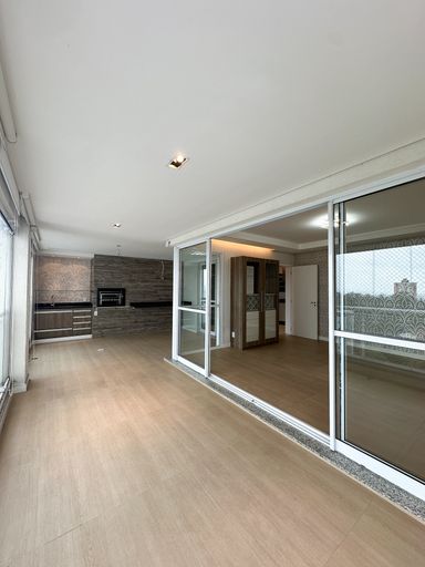 Amplo living integrado a varanda gourmet envidraçada com vista definitiva Varanda com churrasqueira e espaço ideal para receber amigos e família