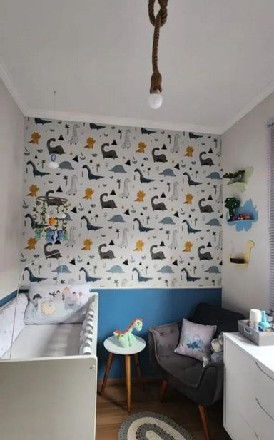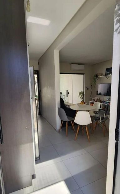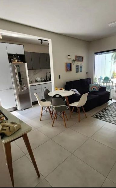 Sala e cozinha integradas, 2 dormitórios, 1 banheiro social.