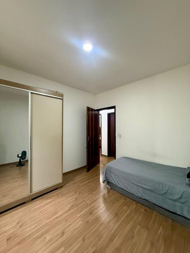1 quarto com grafiato e piso laminado