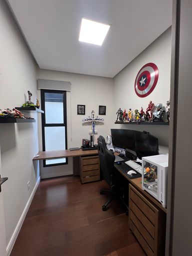 Infraestutura de rede com Cabo internet em todos quartos além de escritório e sala de Tv.