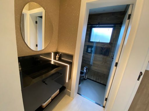 - Área Gourmet com churrasqueira, forno de pizza, ilha em granito e banheiro de lazer.