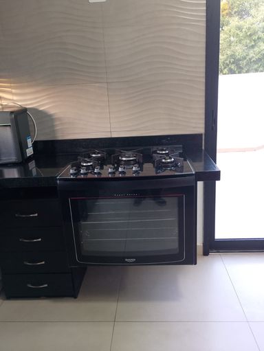 -Cozinha com armários parte de cima, -Fogão de embutir